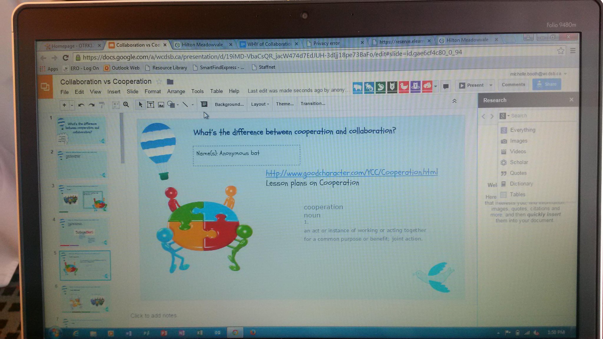 Using digital tools such as gDocs, gSlides, and Padlet we discussed the benefits of collaboration, what conditions are required to foster a collaborative environment, and the difference between cooperation and collaboration. I used the video below from P21 as our MindsOn activity.