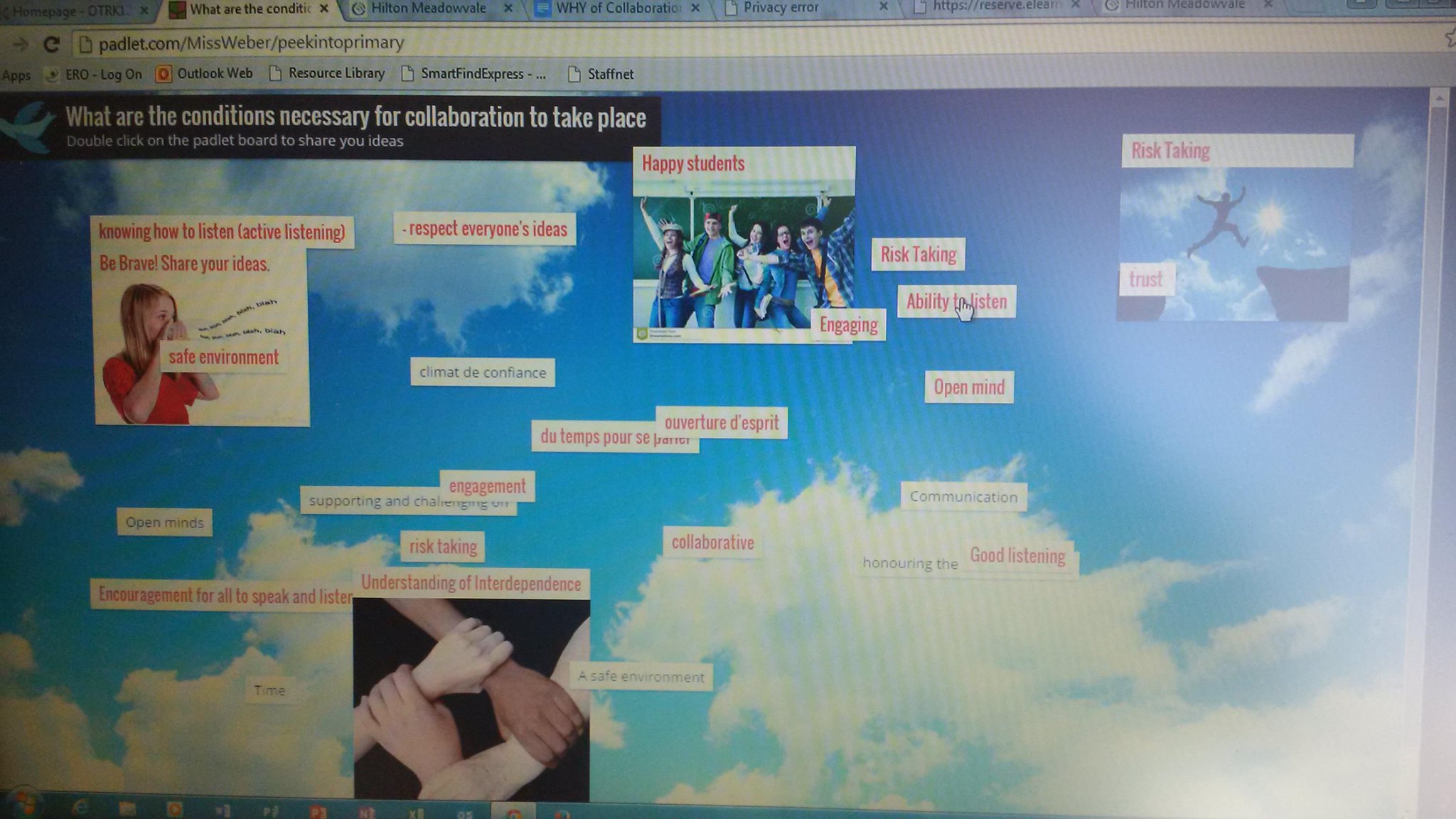 The journey is a collaborative one. Students working together on curricular inquiries, documenting our learning journey, and sharing that journey with families and each other using D2L and GAFE.
